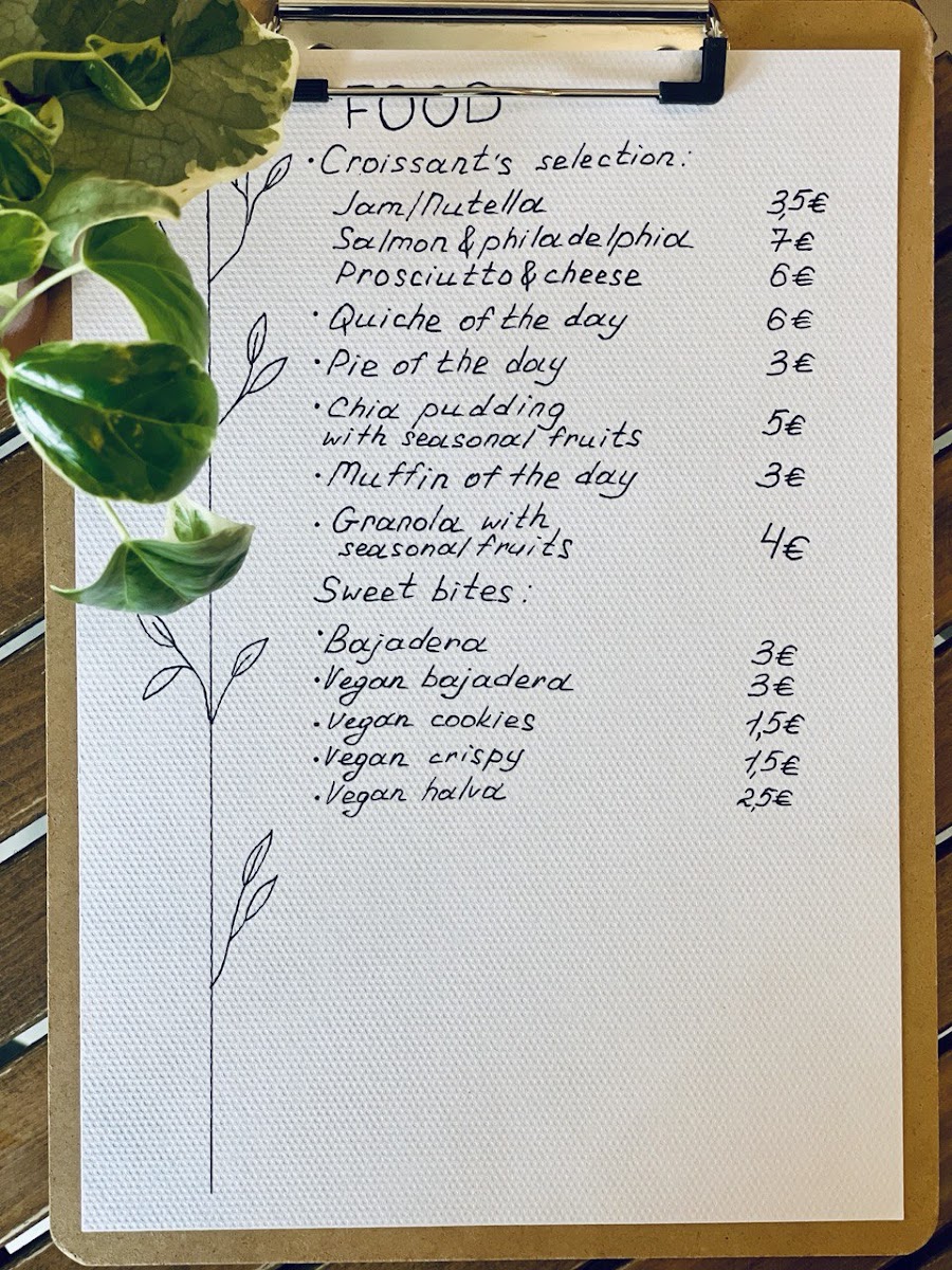 The menu spans a range of homemade dishes and drinks, ensuring each bite resonates with authenticity. Highlights include the Salmon & Philadelphia (€7.00), Prosciutto & Cheese (€6.00), and a rotating selection of Quiche and Pie of the Day at €6.00 and €3.00, respectively. For those with a sweet tooth, don’t miss the warm muffins and granola with seasonal fruits, both tantalizing options.